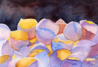 This original watercolor has found a new home with a very special collector! It has given me great joy to sell this particular painting, as the collector has connected at a very deep level with the symbolism of the egg shells: we are ALL broken people in some way, shape or form... but beauty can come from being broken.
